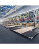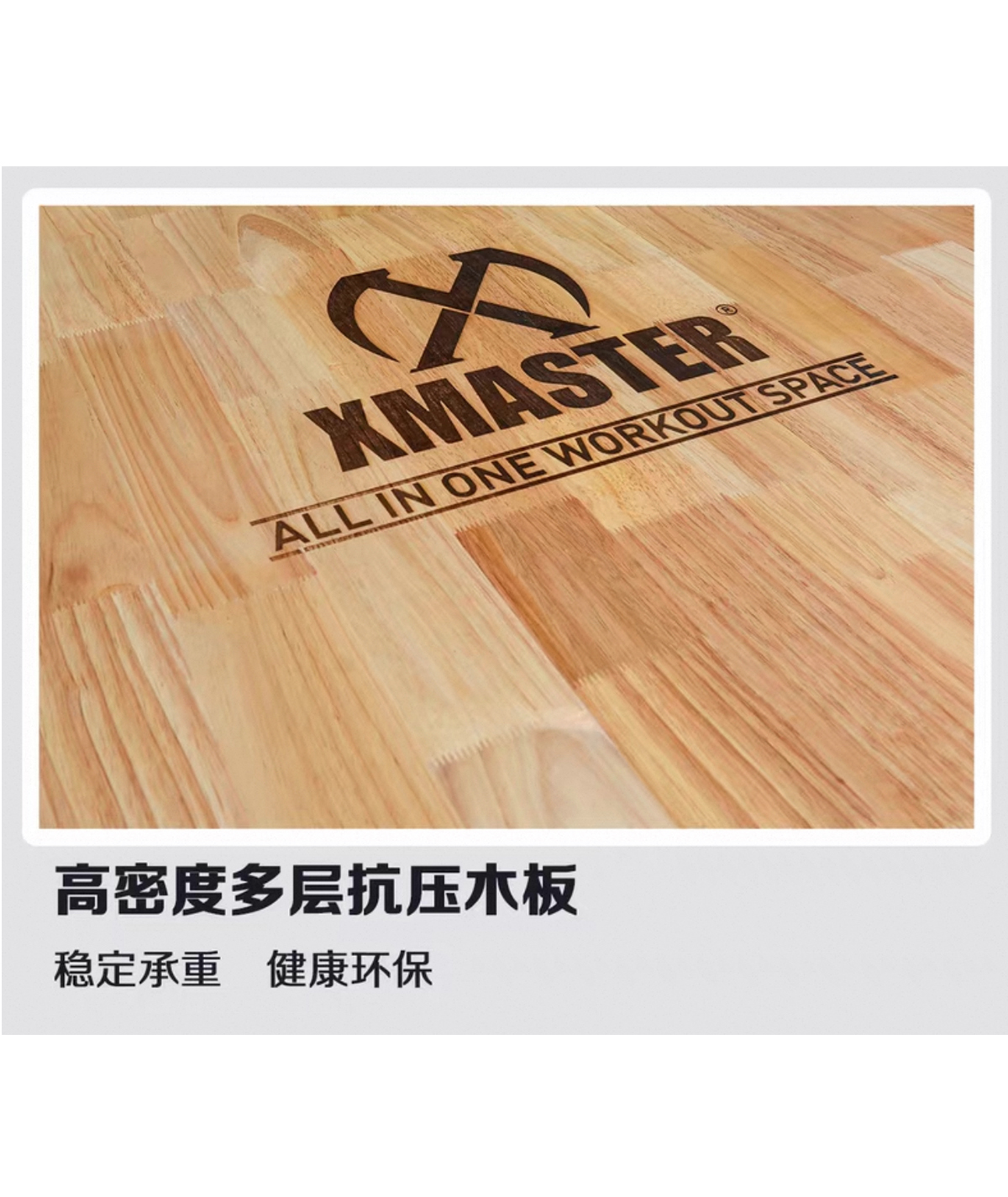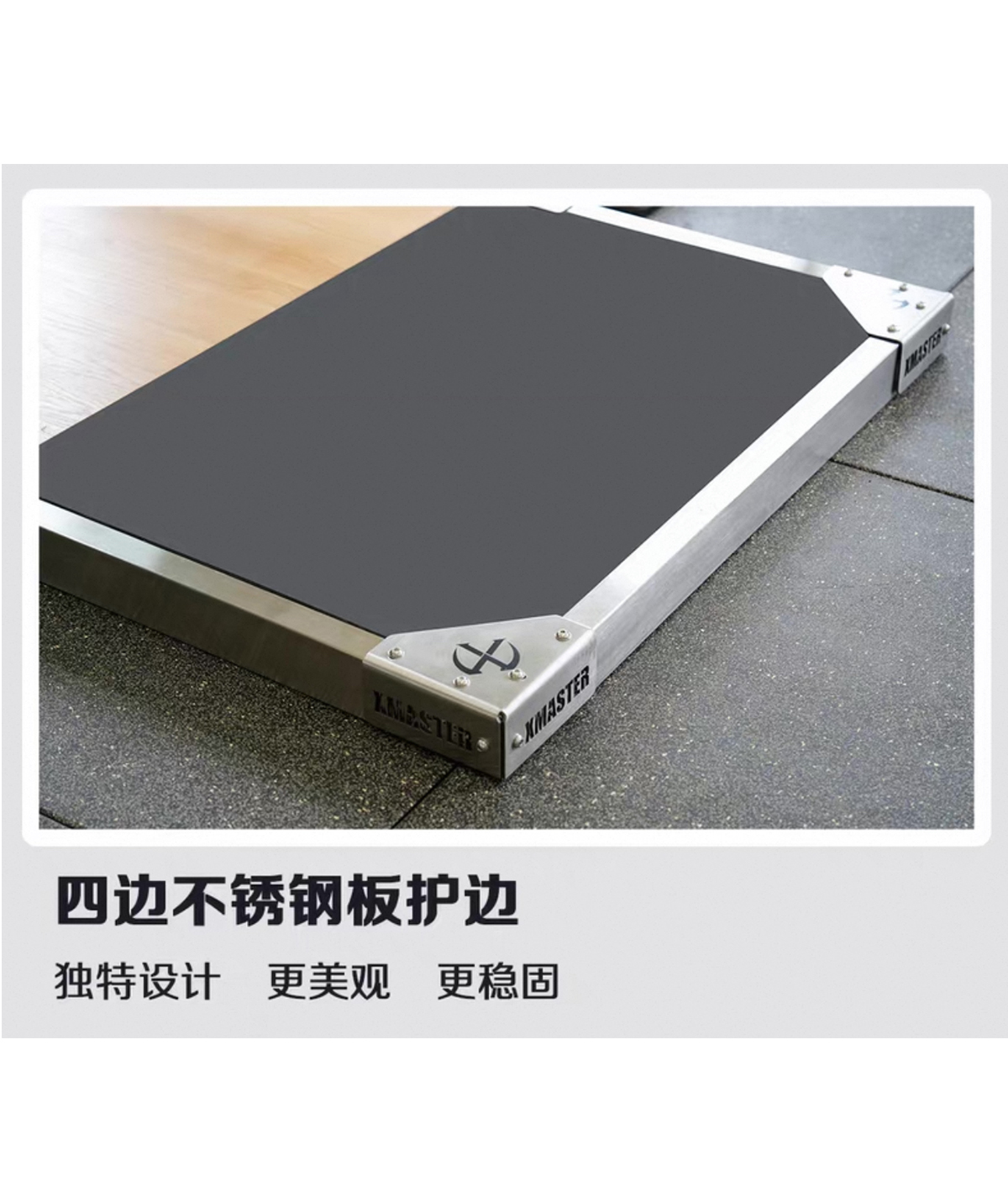 高弹力无味橡胶垫,减震去噪,抗摔耐杂,四边不锈钢板护边。 高密度多层抗压木地板。